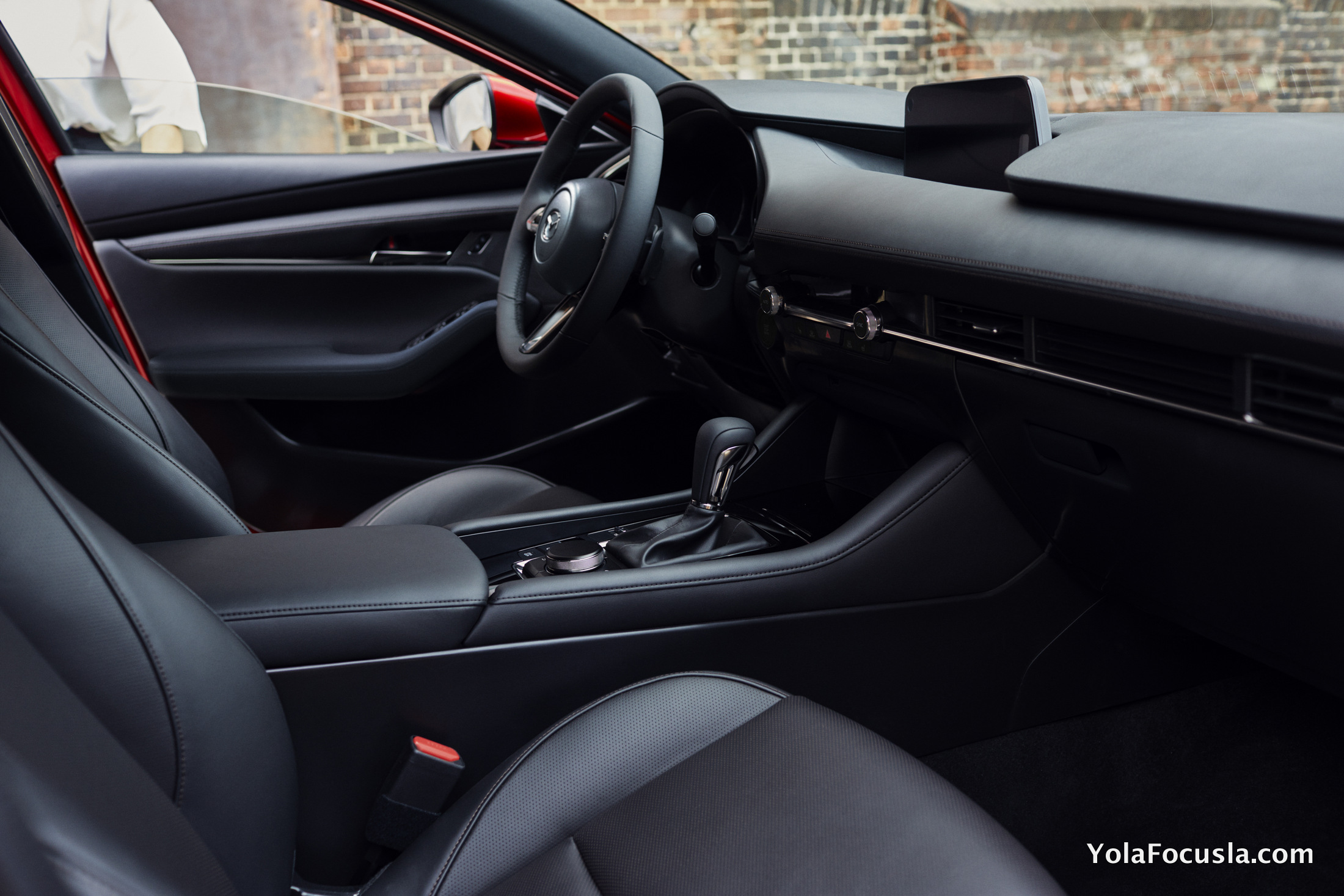 Örneğin, klima kontrol paneli ve yolcu tarafı panjurları, gösterge paneli hattını izleyen sol-sağ eksene entegre edilmiş. Bu, temiz ve basit bir tasarıma neden olmuş. Ayrıca hatchback’e özel bir iç renk olarak yeni geliştirildi. Bu özel kırmızı deriden derin ve canlı bir görünüm, dış tasarımın duygularını artırıyor ve olgun zevklere hitap eden bir görünüm yaratıyor.
